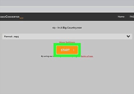 Click or tap Start. You'll see this yellow/orange button below the format drop-down menu. You'll see the progress of your conversion on the next page. This may take a few minutes depending on the size of your file.