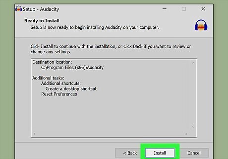 Install Audacity. If you're using Windows and clicked to download the installer, click the downloaded .exe file and follow the on-screen instructions. If you're using a Mac and clicked to download the DMG file, double-click the DMG file to mount it, then drag the "Audacity.app" icon into the “Applications” folder shortcut.