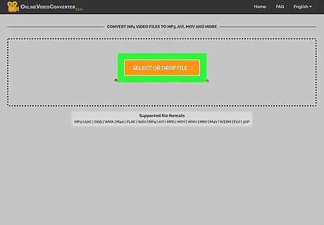 Click or tap Select or Drop File. You'll see this yellow/orange button near the top of the page. You can convert Mp3, AAC, OGG, WMA, M4A, FLAC, WAV, MP4, AVI, MPG, MOV, WMV, MKV, M4V, WEBM, FLV, and 3GP files. Navigate to your file and double-click or single tap to select it.