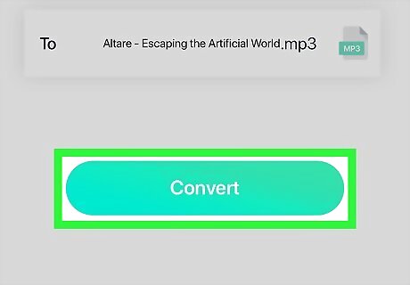 Tap Convert. You'll see this light blue button below the drop-down menus. You'll see the progress of your conversion. It may take a few minutes or seconds depending on the size of the file. The converted file will immediately download to your device, but you will also be given the option to share your converted file with others.