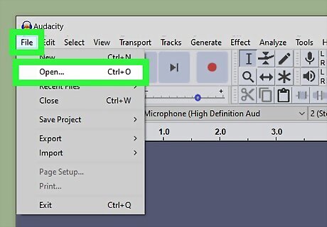Open the file you want to convert to MP3. Hover over File until a menu drops down and click Open. You'll find "File" in the menu above the editor, on the left side of the page (Windows) or at the top left corner of your screen (Mac). Navigate to and double-click the file to open it in Audacity.