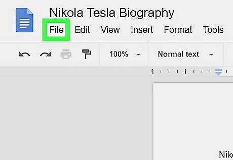 Click the File menu. It’s at the top-left corner of Google Docs.