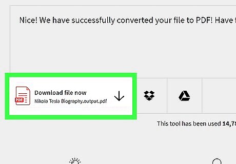 Click Download file now. It’s below the ″Nice! We have successfully converted your file to PDF″ message. Look for the red file icon that says ″PDF″ on it.