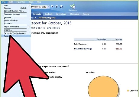 Create a report in Microsoft Money by right-clicking on the file name in the file directory. Press "Export" to create a text document. Save the information to a separate file within the directory.