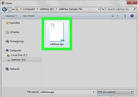 Navigate to the folder that contains the XPS file. The file should end with the “.xps” extension.