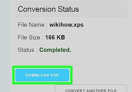 Click DOWNLOAD PDF. It’s the blue button under the “Completed” message. This downloads the PDF version of the XPS file to your computer.