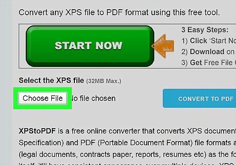 Click Choose File. It’s the gray button below “Select the XPS file.” This opens your computer’s file browser. The converter only works with files that are 32 MB and smaller.