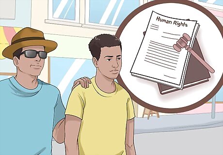Sponsor advocacy events. Host an event that educates about the blind or visually impaired. The more information people have, the less likely they are to discriminate. For example, you might host a fundraising concert at school. You could give out educational brochures at the concert and feature blind musicians.