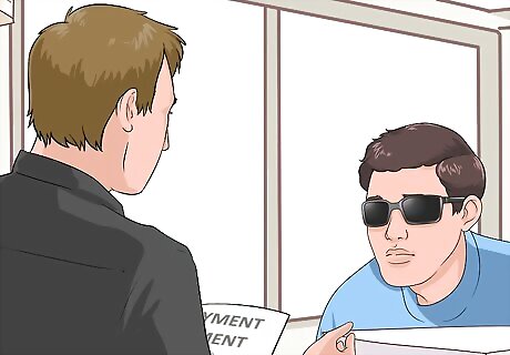 Prepare to request reasonable accommodations, if needed. Providing reasonable accommodation means making changes to the work environment or application process so that blind or visually impaired people have equal access to employment. Employers are required to do this under the Americans with Disabilities Act. If you requested an accommodation that was not provided, you can file an official complaint through your local government website or through the US Equal Employment Opportunity Commission. Specific accommodations may include: Changes in lighting (natural, halogen, fluorescent). Use of large print or braille on documents or signs. Use of electronic voice messages in place of written communication. A human assistant to help with written tasks or other visual communication. Changes in work schedule to accommodate for public transportation. Sharing or switching assignments with other employees.