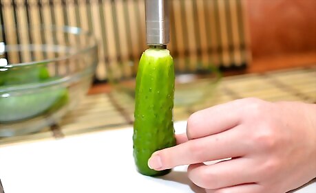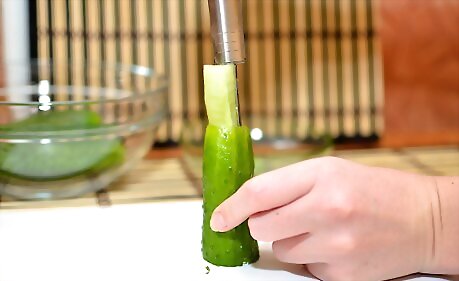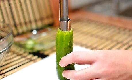 Coring Whole Cucumbers with a Handheld Vegetable Corer