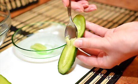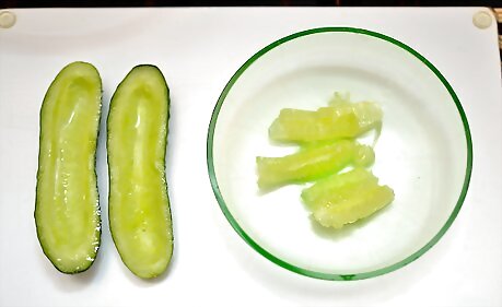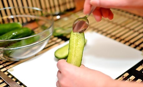 Coring Cucumber Halves With a Spoon