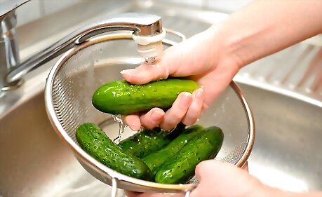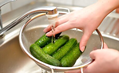 Wash the cucumber under a stream of cool water.