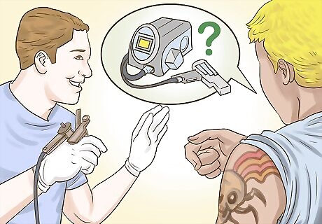 Ask if you should be getting laser removal sessions. Some designs are simply too dark to be covered up, and might not mesh well with the new design you have planned. The best person to ask is a tattoo artist. They'll give you some advice, including whether it's needed and how many sessions you might need.