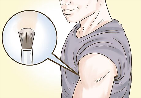 Finish with invisible loose powder. This will help the makeup set. It won't run and is less likely to rub off. Use a fluffy eyeshadow brush to dab the powder onto the layers of concealer. Again, you don't want to brush the powder on, as it might rub some of the concealer off.