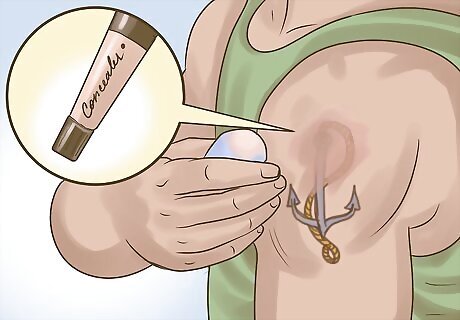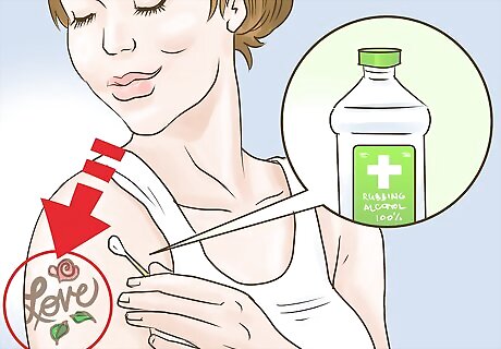 Clean the area with alcohol. Not only will this clean and disinfect the ink, it will also remove any oil buildup in your pores. Use a cotton swab, dipped in rubbing alcohol, to dab the tattooed area.