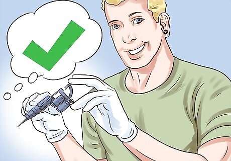 Check the artist's qualifications. You should make sure that any licenses or certifications the artist holds are up to date. Find out what experience they have, if they underwent an apprenticeship, and if so, where. This will give you a better idea of their professionalism. Additionally, you should confirm the tattoo parlor is safe and clean. While tattoo parlors aren't regulated everywhere, there are a few things you can check to confirm safety. For example, the parlor should use disposable needles and inkwells.