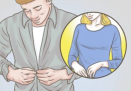 Hide the tattoo with clothing. The kind of clothing you use will depend on the tattoo, its placement, and the reason you need to hide it. Darker tattoos will show through sheer or light clothing, so you'll need to wear darker clothes. The best kind of shirt for covering up a tattoo is a dark, long sleeved shirt. If you're hiding your tattoo in a professional setting, you'll likely need to wear a collared shirt. If your tattoo is higher on your arm, you can get away with a short sleeve shirt. Make sure it's the right size so the sleeves won't ride up.