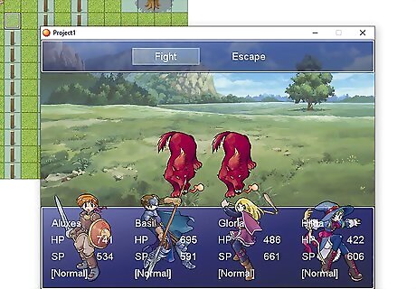 Create your game objects. This next section will require much time and fine-tuning as you create your game. Everything here is done in the Database. The tabs at the top are essentially your to-do list. For the most part, you want to go through each, ensuring that they are filled out with everything your game will contain, from your primary characters, all the weapons, character abilities, item, status effects, monsters, the experience they give, items they drop, and of course, the groups those enemies will be in when they attack your party, as well as editing the different tilesets you have. In other words, create the entire underlay of the game. You also don't have to worry about the "Common Events" or "System" tab just yet. You will be coming back to the Database over and over again as you play through everything you create, but for now, just create the “preliminary draft”.