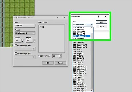 Place monsters on the map. You’ve already created your monster groups, now you have to put them on their respective maps. You can do this in the map menu by right clicking on it in the menu pane, and clicking "Map Properties". There, you’ll be able to select which monster groups you want to appear in that map and how common that group will appear.