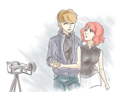 Set up your filming. Have all the elements in place, everyone on cue, and all distractions put away, so everyone can concentrate on their part of the process. Depending on how involved and detailed the scene is, and how critical the time window for filming is, you want to have as much control over the events on camera as possible.