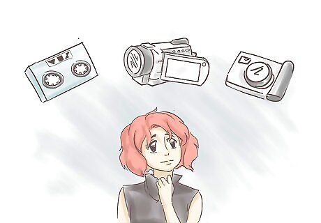 Choose the type of camera or cameras you will film with. You may have access to a VHS camcorder, an 8mm movie camera, or even an old 35mm film camera, but to simplify editing, you will probably want to be able to transfer the video to a digital format so it can be edited on a PC.