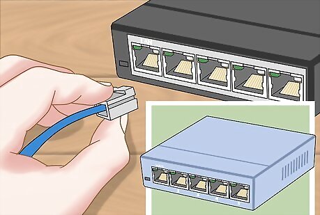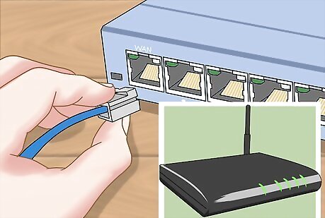 Connect your switch to your router (if necessary). If you're using a switch to expand the number of ports available on the router, plug an Ethernet cable into any LAN port on the router and any LAN port on the switch. This will expand the network to the rest of the LAN ports on the switch.