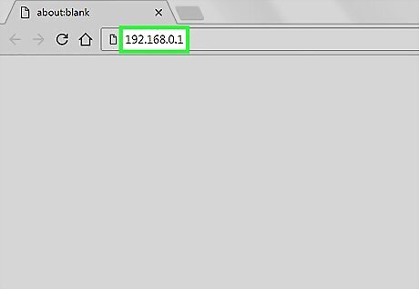Type in the router's IP address. You can typically find this printed on the bottom of the router, or in your router's documentation. If you can't find it, there are a couple things you can try: Windows - Right-click the Network button in the System Tray → click Open Network and Sharing Center → click the Ethernet link → click Details → find the Default Gateway entry for your router's IP address. Mac - Click the Apple menu and select System Preferences → click Network → click your Ethernet connection → find the Router entry for your router's IP address.