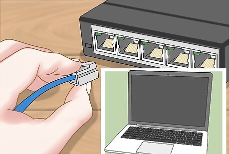 Connect your computers to open LAN ports. Use Ethernet cables to connect each computer to an open LAN port on your router or switch. It doesn't matter what order the ports are connected in. Ethernet cables cannot reliably transfer data at lengths larger than 100m (328 ft).