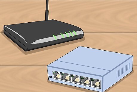 Gather your network hardware. To create a LAN, you'll need a router or switch, which will act as the hub of your network. These devices route information to the correct computers. A router will automatically handle assigning IP addresses to each device on the network, and is necessary if you intend to share your internet connection with all the connected devices. It is highly recommended that you build your network with a router, even if you're not sharing an internet connection. A network switch is like a simpler version of a router. It will allow connected devices to talk to each other, but will not automatically assign IP addresses and will not share an internet connection. Switches are best used to expand the number of LAN ports available on the network, as they can be connected to the router.