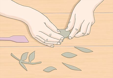 Form the design. Once you have mixed the M-Seal, start making your desired design from the M-Seal putty mix. Follow the template you cut out in the previous section to make the shapes exact. If, for example, you're making floral design, then shape petals, leaves and a stem from the M-Seal, following your paper design on the work surface. It is up to you whether you design one whole piece or several pieces to be joined together. Do whatever seems appropriate for the chosen design.