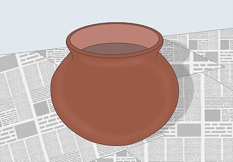 Place newspaper on your table to cover the work surface. Place your terracotta/mud pot on the newspaper.
