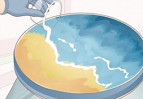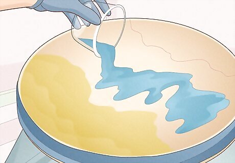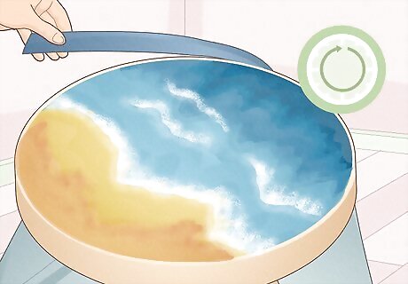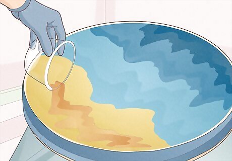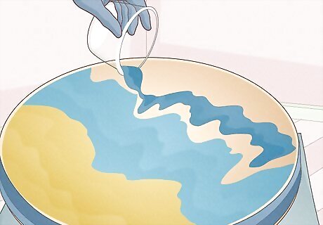 Place a small sample of the resin into the 1 fluid oz mixing cups to test out the color you want. Once you've found your colors, mix it into larger portion of resin you had set up. 2-6% of the resin's weight should be the amount of coloring added. Try eyeballing it to about 2-3 drops of the color. Make sure to mix for a minute, so the color is incorporated well and so there are no air bubbles. If you don't want a beach look and just want an ocean one, then you don't have to create the yellow and light brown resin. If you are sure about the color you want, then skip this step.