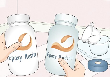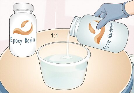 Mix the resin into the hardener with a 1 to 1 ratio, or according to what the instructions on the resin bottle tells you to. Make sure you are wearing gloves for the rest of the process to be safe.