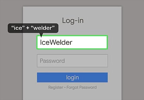 Combine two or more of your favorite things. Brainstorm a list of your favorite things, then smash two or three of them together into a username. You can create absurd, nonsensical usernames in this way, which increases the chances of having a one-of-a-kind username. For example, if you like pandas and orcas, you might make your username "WhalePanda." Or, if you’d like a more edgy username, you might try "KillerPanda.” Try using two favorites from different categories. For instance, if you love ice hockey and creating art out of scrap metal, you might become “IceWelder.”