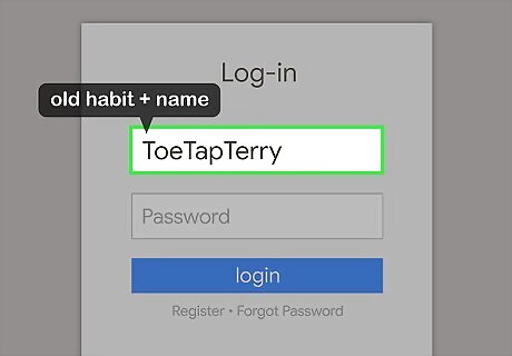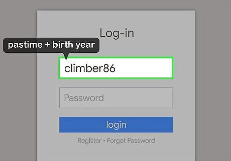 Add a memorable number to your favorite pastime. Making a username out of what you love to do will not only make it easy to remember, it will make it uniquely personal. You’ll probably have to tack on a number, though, since there are a lot of usernames with things like “swimmer” or “beautyguru” in them. One way to do this is to use your pastime in conjunction with your birth year—for example, "jennyrockclimber86" or "fictionauthor91." If you’d prefer not to use your birth year for privacy or security purposes, choose another memorable set of digits. For instance, if you’ll always remember that you did your first stand-up comedy routine in 2014, you might become “OpenMic14.”