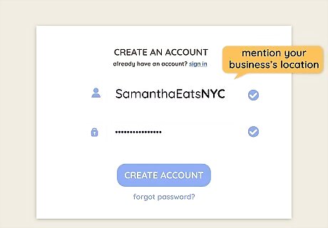 Add your business’s location to your username. Put your country, state, or city at the end of your username to help you get noticed by potential customers who might be nearby. If you’re a big brand, use your country’s name, but if you’re a small business, use your city name. For instance, if you’re a food blogger, you might choose a name like “SamanthaEatsNYC” or “TheFoodieInTallahassee.”