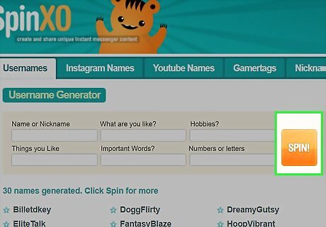 Click SPIN!. It's an orange button to the right of the text fields. This will generate a list of 30 possible usernames based on your provided information.