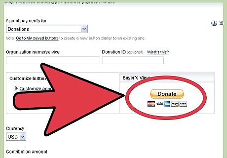 Set up your donation button. You can find a donation button through PayPal as well as many other online merchant companies. Make sure you copy and paste the given HTML code correctly, and test it before you publish your website.