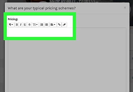 Edit your pricing. If you expect to be getting paid for your work, this lets members know your price. If you're an amateur, and aren't sure you want to tackle paid jobs just yet, fill it in with "Negotiable" or "Open", as it looks more professional than just leaving it blank.