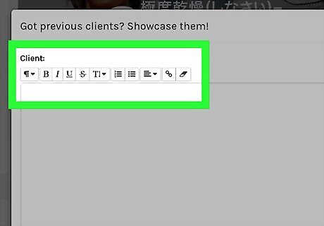 Add previous clients. If you've had any acting experience, don't be afraid to list it.