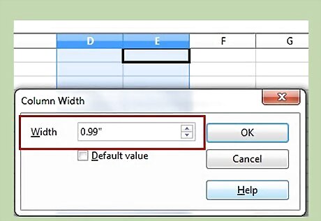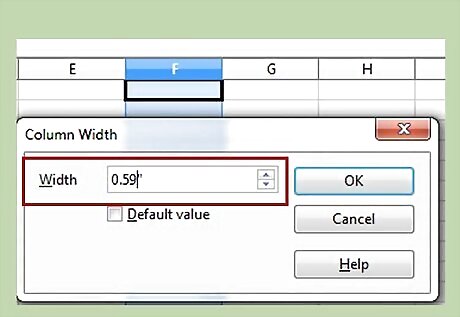 Change the width of column F to 0.59.