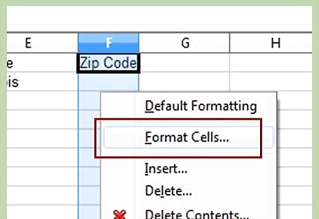 Format the zip code column. You will notice that the zip with the leading zero is not showing the zero. Right click on the F column and then select Format Cells...Create an Address Book Using Open Office Calc Step 9Bullet1.jpg Select the Numbers tab.Create an Address Book Using Open Office Calc Step 9Bullet2.jpg Select Number under the Category section.Create an Address Book Using Open Office Calc Step 9Bullet3.jpg Under Format, click General.Create an Address Book Using Open Office Calc Step 9Bullet4.jpg In the leading zeros box, change the number 1 to 5Create an Address Book Using Open Office Calc Step 9Bullet5.jpg This is how everything should look.Create an Address Book Using Open Office Calc Step 9Bullet6.jpg