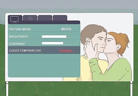 Adjust color temperature so actors in the movie don’t look orange. Skip to a scene that features any human. Then, adjust the color temperature slider on your projector until the shade of their skin looks natural. Finding the right color temperature is easiest to do when looking at skin tones.