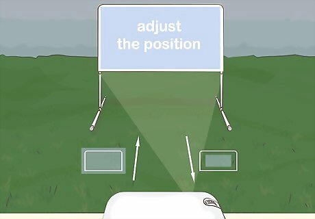Adjust the location of your projector until the image is large enough. Do a test run before showing the movie to make sure it will appear the way you want it on the screen. Move the projector closer to the screen if you want to enlarge the image, but move it farther away if you want to make it smaller. Ideally, the projection of the film will fit perfectly on the sheet. Keep in mind that projectors only produce a limited amount of light, so increasing image size usually means decreasing brightness as well. You may need a stand or support of some sort to get your projector at the right height, too. There are special projector stands that you can purchase, but you can also experiment with any furniture pieces or chairs that you might have on hand.