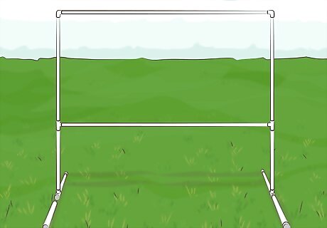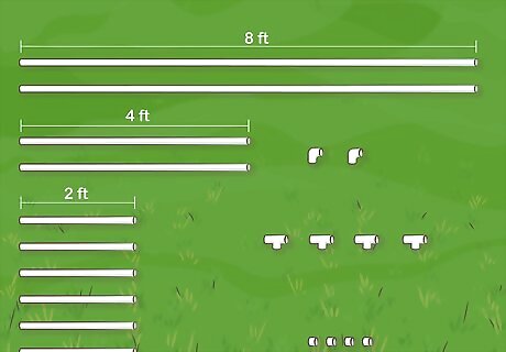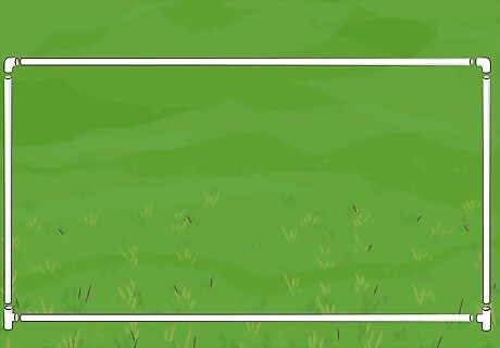 Assemble the main frame by attaching the pipes with the connectors. Lay out the pieces on the ground in the way that they will be connected. The 8 ft (2.4 m) pieces should be across from each other and the 4 ft (1.2 m) pieces should be across from each other, forming a rectangle. Connect the top corners of the rectangle using the elbow connectors. Connect the bottom corners of the rectangle using the tee connectors.