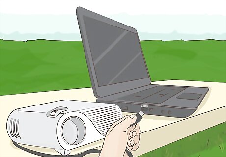 Buy or rent a projector with HDMI connectivity. If you are going to be making backyard movie nights a regular summer occasion, it might be wise to invest in a projector of your own. On the other hand, if you’re looking to use a projector once, rent one from a local library or electronic supply store. Get a projector with HDMI connectivity to easily connect your projector to your laptop. Here are some other specs to keep in mind while choosing a projector: There are currently no projectors that are made exclusively for outdoor use, but most home theater projectors with above 2,000 lumens for brightness and with HD capabilities (i.e. resolutions of 720 or 1080p) will work perfectly. The larger your screen is, the higher resolution you will need. Get a projector with bluetooth capabilities to make your audio system setup a whole lot smoother. Streamline your setup by purchasing a projector that is wifi enabled. These projectors are able to connect directly to apps like Netflix, HBO Go, Hulu, Google Play, or Amazon Instant Video and stream from there.