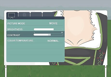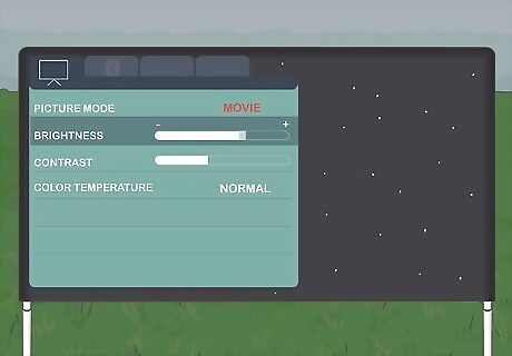Adjust your projector’s brightness so you can see details in black. If your projector has a “cinema” or “movie” mode, select that. Then, project a scene of the movie that features a lot of the color black. Go to the picture settings menu and push the brightness dial up and down until the image is bright enough, but detail appears in the black areas. For example, if you’re watching the scenes from Gravity that feature a lot of the black space background, you’ll still want to be able to see the stars and smaller details in the black parts.