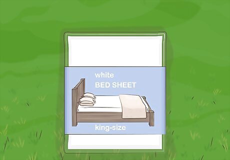 Find a white king-size sheet. You can buy a new one from your local home supply store, or you can use an old sheet that you don’t use anymore. Just make sure there are no holes or tears in it. If you’re looking to buy a new sheet, keep in mind that high thread count bedsheets tend to reflect light better than thinner sheets. If you would like a thicker material, buy a piece of canvas drop cloth from your local hardware store. Alternatively, if you don’t want to use a sheet and would like a thicker material, purchase a piece of canvas drop cloth. Make sure it measures at least 8 by 16 ft (2.4 by 4.9 m), because you’re going to fold it over to make a 4 by 8 ft (1.2 by 2.4 m) screen.