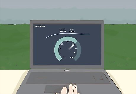 Check that your wifi connection is strong enough. Set up your outdoor theater as close as possible to your wifi router. Then, go to the settings of your laptop or projector and check the strength of your wifi connection. If you’re planning on streaming your movie directly from your projector or laptop, you’ll need a strong wifi connection to stop your movie from buffering all evening long. Some routers support device prioritizing for streaming. Check your router’s settings to see if it has this capability. If it does, prioritize the projector so it gets the best possible connection speed. Speedtest.net by Ookla can tell you exactly how fast your connection is. Run this test from the spot that you would like to set up your theater in your backyard. Netflix recommends a speed of 25 Megabits (Mbps) per second for high-quality HD streaming.