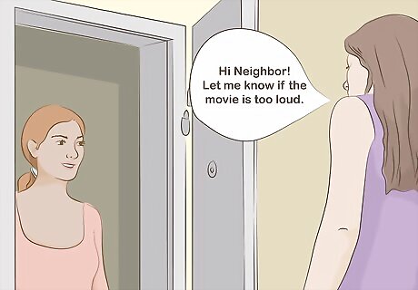 Do your best to not disturb your neighbors with noise. If you live in a suburban area, you might want to ask for your neighbors’ permission or let them know that you will be doing a backyard movie night beforehand. Or (even better) invite them to join the party! This will give them a heads-up about what you’re doing, and also make them feel welcome in your home. Some areas have noise restrictions imposed by the local government, so be mindful of these.